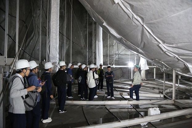 27日は岐阜かかみがはら航空宇宙博物館と核融合科学研究所、28日は東京大学の水チェレンコフ宇宙素粒子観測装置「スーパーカミオカンデ」と東北大学のニュートリノ観測装置「カムランド」、29日には東京大学の大型低温重力波望遠鏡「KAGRA」を見学させていただき、それぞれの施設で研究をされている研究者の方々の講演も拝聴することができました。なかでも特に「KAGRA」の見学では、地下1000mに設置された長さ3 kmの「Xアーム」を実際に見ることができ、参加した生徒たちは非常に感激しておりました。お忙しい中、見学対応ならびに講演をして下さった研究者、スタッフの皆様に、この場を借りて厚く御礼申し上げます。