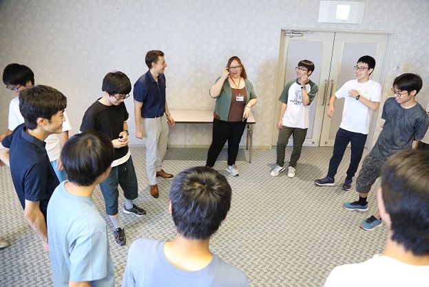 ハーバードのメンター1名に対して生徒8または9人が1班となり、ホテルの部屋に分かれての実施となりました。初日に3つの必須のワークショップを順に受け、2日目は各自の興味のあるワークショップを受講しました。2日目のワークショップは専門性の高い内容で、語彙のレベルも高いものがありました。毎日、最初にアイスブレークと終わりに振り返りを行い、英語でのコミュニケーション力を高めていきました。南部学舎で生徒と同じ昼食をとってもらい、ハーバード生にも合宿の1つの楽しみを共有してもらうことができました。最後のプレゼンテーションは感想やこれからの自分についての英語でのスピーチでしたが、その難しさを存分に体感していました。