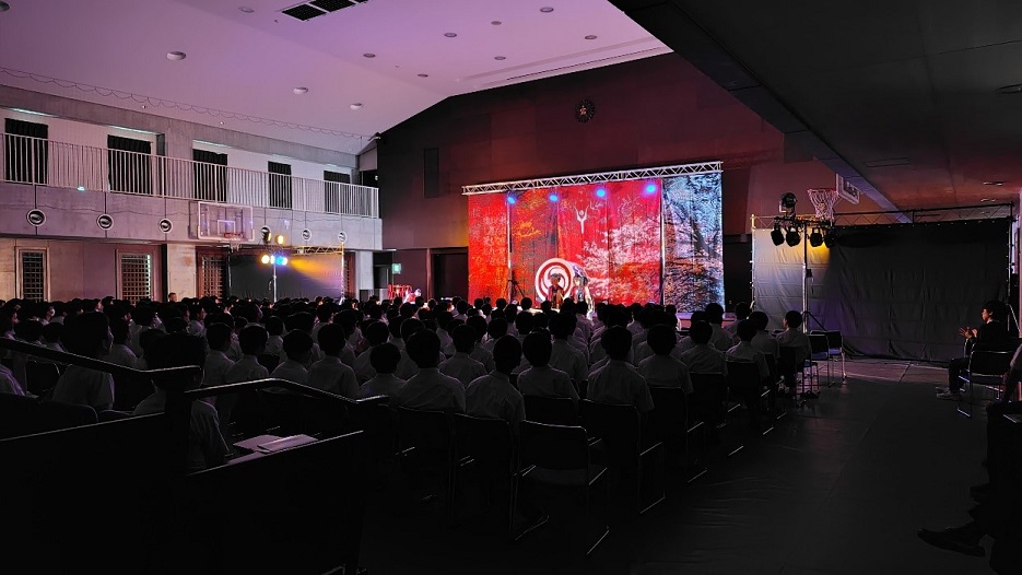 10月1日、今年度の芸術鑑賞が行われ、和太鼓集団「倭-YAMATO」の舞台を鑑賞しました。太鼓の音が振動して身体にズシンと響いてくるような迫力があり、生徒達には非常に印象深かったそうです。体験コーナーもあり、こちらも大いに盛り上がりました。